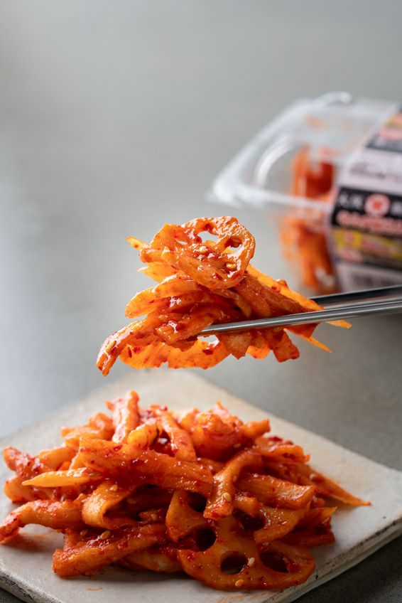 当社の人気キムチ「れんこんキムチ」と「割干大根キムチ」に「ごぼうキムチ」をミックスしたキムチです。 異なる独特の食感の組み合わせが人気の秘訣やと思います♪ 三つの根菜が織りなす風味と食感が楽しめますよ~!! 噛むほどに旨味が広がる食感自慢のキムチです♪
