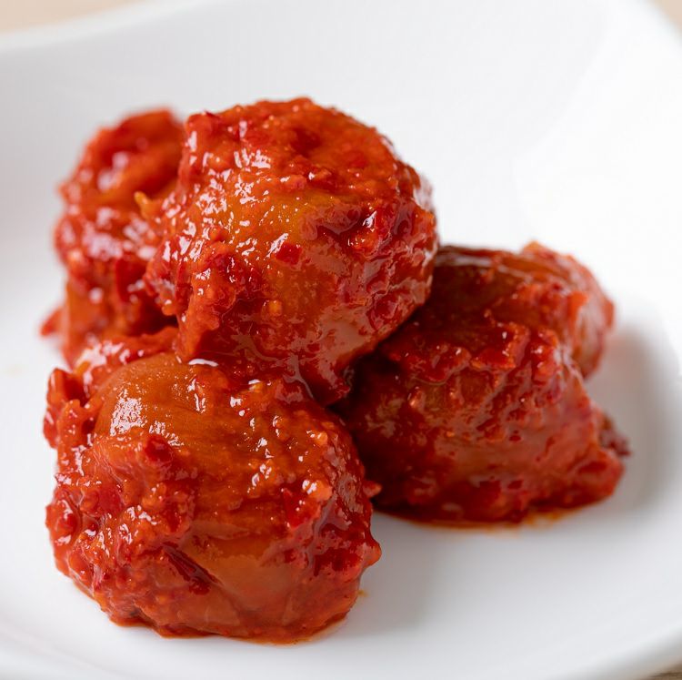 柔らかく肉厚な果肉が特長の和歌山県産南高梅の梅干しを使用し、キムチ専門店の特製だれ(ヤンニョン)で丁寧に仕上げた、他にはない味わいの「梅干しキムチ」です。 梅干しとキムチという一見意外な組み合わせですが、それぞれの良さを活かすことで、上品で奥行きのある一品に仕上げました。 使用している梅干しは、日本を代表する梅の産地・和歌山県産の南高梅。 皮が薄く、果肉が非常に柔らかいため、口に入れた瞬間にとろりとほどけるような食感をお楽しみいただけます。その上質な梅干しを、長年キムチ作りに向き合ってきた当店の特製ヤンニョンと合わせることで、梅干し本来の甘みと酸味を活かしたキムチが完成しました。 一口目は、キムチらしいピリッとした辛味が心地よく広がります。 しかし辛さが前に出すぎることはなく、食べ進めるにつれて梅干し特有のやさしい甘みと爽やかな酸味がじわじわと感じられるのが特長です。辛味・甘み・酸味のバランスが非常によく、後味はすっきり。キムチでありながら、どこか品のある味わいに仕上がっています。 「梅干しの味を殺さず、しっかりキムチになっている」とお客様から評価をいただくことも多く、梅干し好きの方はもちろん、これまでにないキムチを求める方にも好評です。 梅干し本来の風味を損なわないよう、ヤンニョンの配合や辛味の出し方には何度も試作を重ねました。 ベースには、はちみつ梅干しを使用しているため、全体としてやや甘めの仕上がりとなっています。 甘い梅干しが苦手な方にはおすすめしておりませんが、まろやかな甘酸っぱさとキムチの辛味が調和した味わいは、幅広い食シーンでお楽しみいただけます。 白ご飯のお供としてはもちろん、冷奴や焼き魚の付け合わせ、さっぱりとした副菜としても活躍。 食欲が落ちがちな季節にも食べやすい一品です。 日々の食卓に、少し特別なキムチをぜひお試しください。