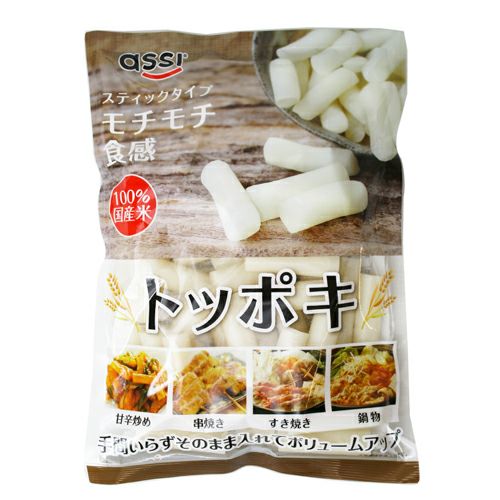 国産うるち米100%を使用したお米の味が豊かなトッポッキです。 もちもちとした食感で煮崩れしにく、鍋物や炒め物、グラタン、カレー等様々な料理に利用できます。