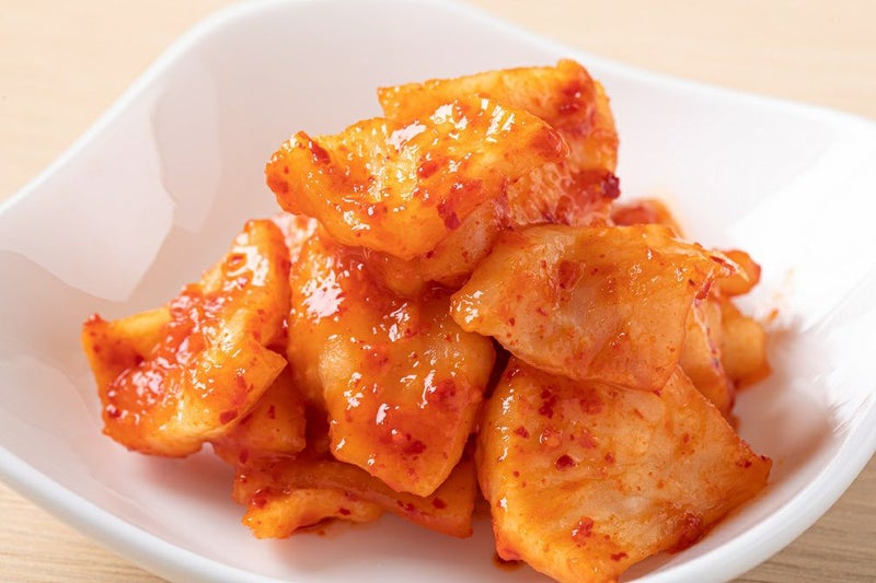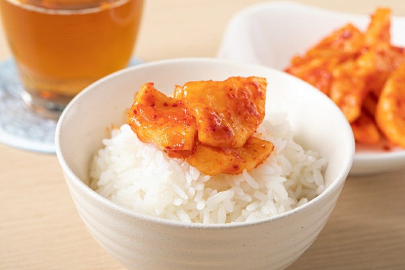 近江漬物の老舗やまじょう様とのコラボ商品となっています。守り続ける伝統製法。進化し続ける最新の技術。やまじょう様のお漬物の美味しさは、四季折々の素材を活かした、旨味・風味・歯ごたえのバランスの「妙」に尽きます。自然からの贈り物である素材を活かし、美味しさの「妙」を創り出すことこそが、本当の業であると考えているやまじょう様の美味しさの「妙」と黄さんのキムチの「くせになる辛さ」が出会い、作り上げたキムチたくあんはきっと感動につながるはずです。