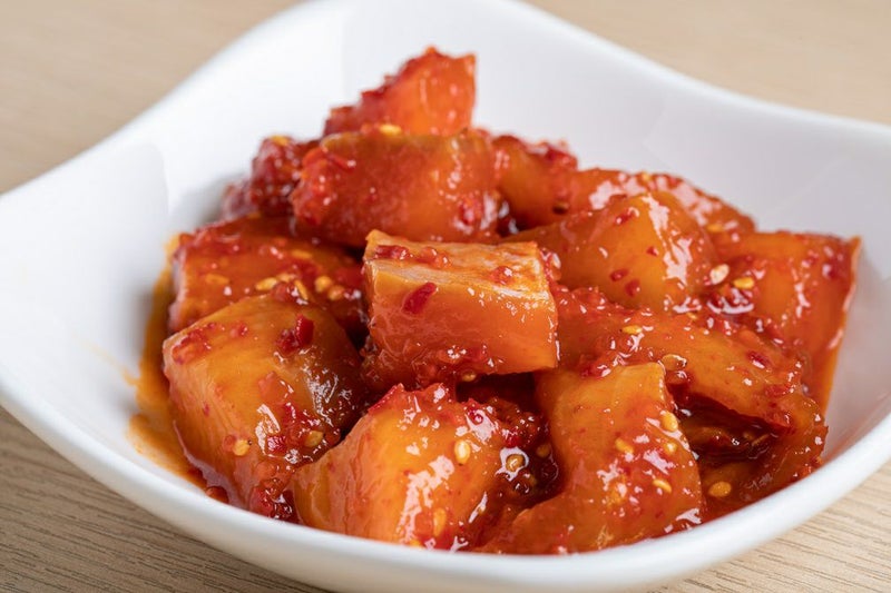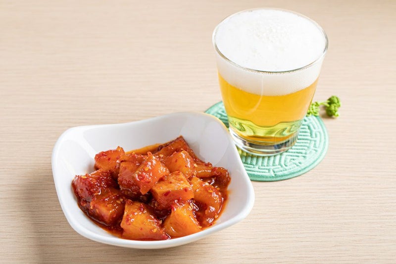 鮭キムチといえば北海道。そのイメージが強い中、「大阪で作る意味」をずっと探し続けていました。そんな時、大阪で陸上養殖を手掛ける会社から一つの提案をいただきました。捌いた際の色味など、味は一級品ながら規格外となったB品サーモン。これらを無駄にせず、当店のヤンニョンの力で最高のご馳走に生まれ変わらせる――。これこそが、私たちの「手造り」の価値だと確信しました。