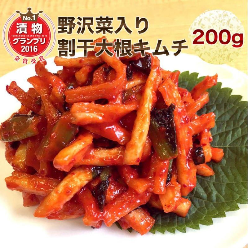 パリパリした食感の割干大根と、いろどりに国産の野沢菜を混ぜ 祖母の代から伝わる自慢のコチュジャンと、フルーツを練りこんだ特製キムチヤンニョンを使って 甘辛いキムチに仕上げました。食感のアクセントと甘辛な味でビールや酎ハイに合わせると良いつまみになります。