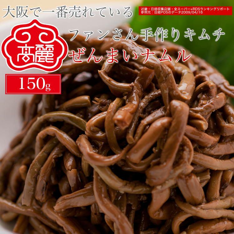 ポピュラーな山菜であるゼンマイを炊き、ゴマ油・塩・胡椒で味付けしています。山菜の風味が絶妙に香る、食感豊かなナムルです。ご飯に乗せて、山菜ご飯としてもおすすめです。
