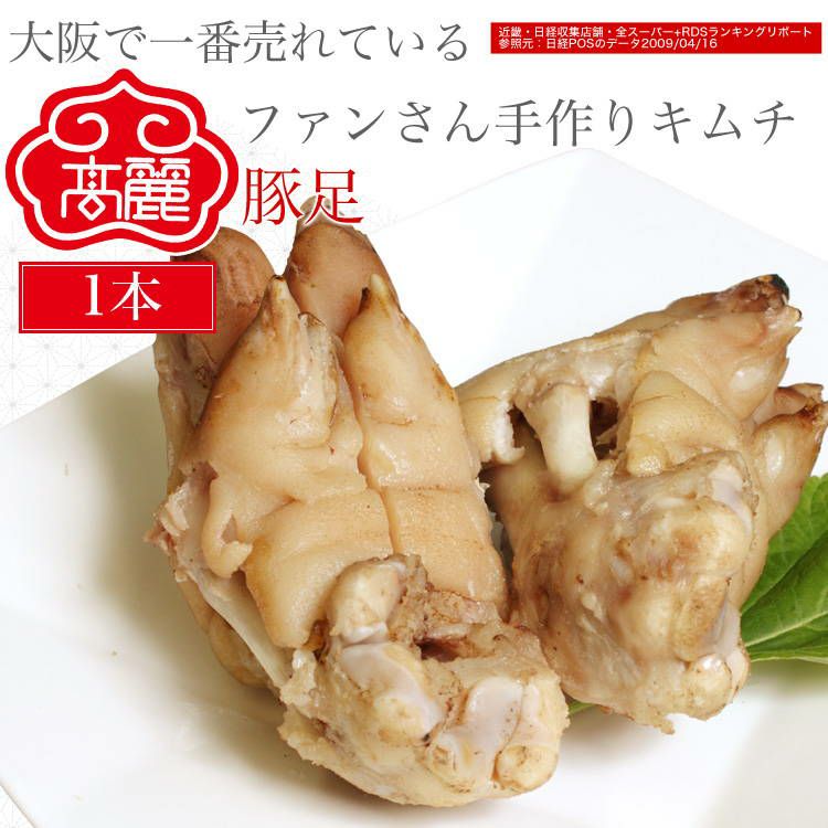豚足[1本]【真空パック】プリプリのコラーゲンたっぷりな豚足を1っポンそのまま真空パックにしてお届けします。当店の自家製味噌などとあわせてお召し上がりください。丁寧に下処理をした後、独自の方法で蒸し上げます。以前は酒のツマミなどで食される男性向けの食材でしたが、近年はコラーゲンが多く含まれ低カロリーな事から美容食として女性にも好まれます。